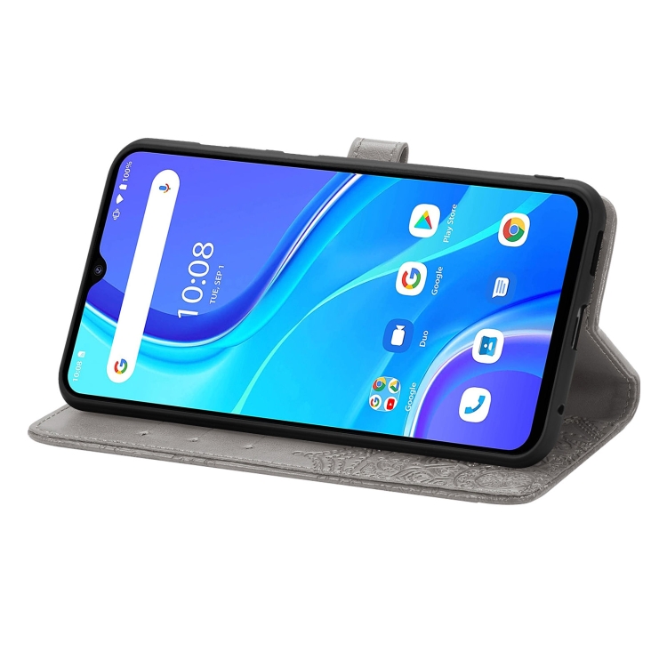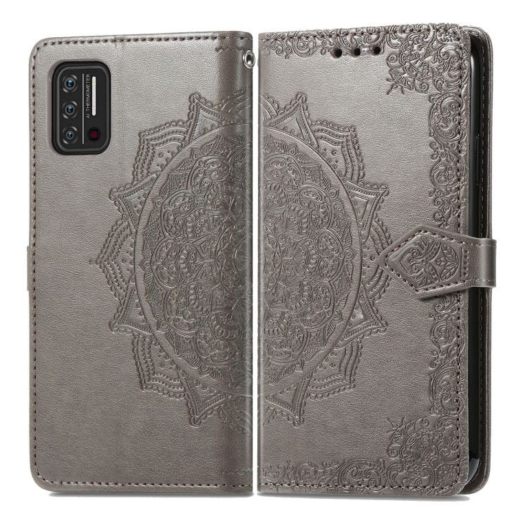 Funda de Cuero Horizontal para Umidigi A7S Mandala Flower con Soporte, Tarjetero y Billetera (Gris)