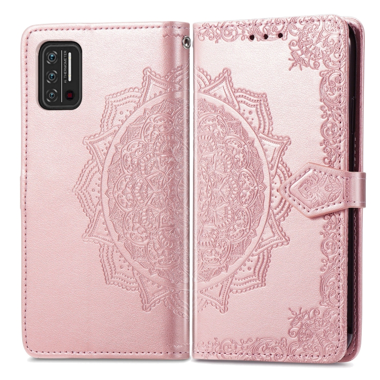 Funda de Cuero Horizontal Flip para Umidigi A7S Mandala Flower con Titular, Trilladores, Billetera y Cordón (Oro Rosa)