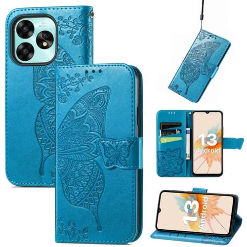 Funda para Umidigi G5 / G5A de Cuero con Relieve Flor de Amor y Mariposa (Azul)