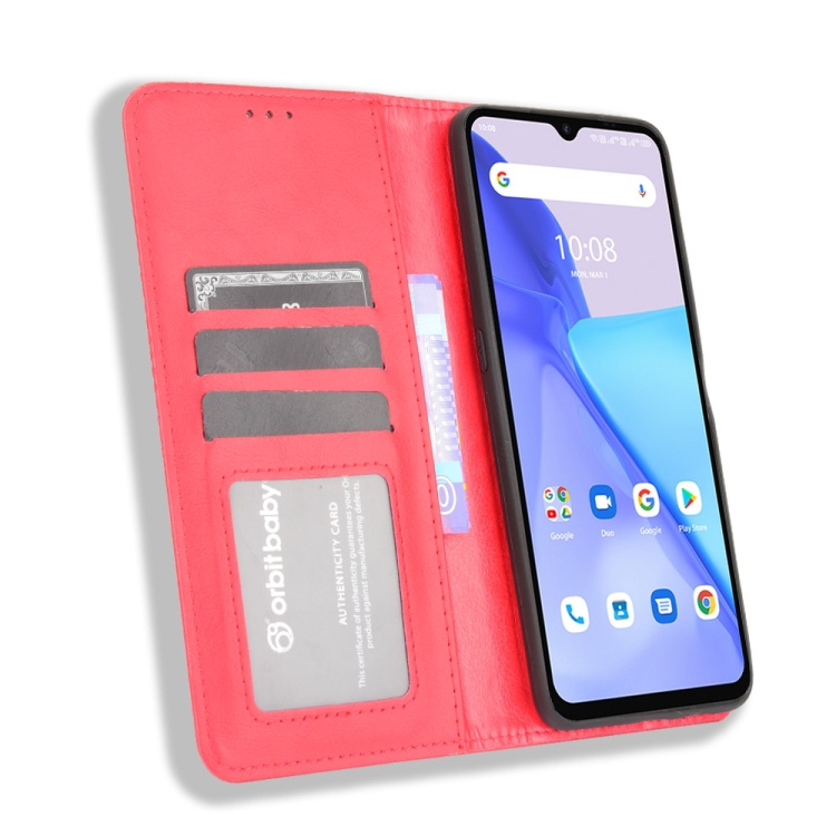 Funda de Cuero para Umidigi Power 5 con Hebilla Magnética, Soporte, Ranuras para Tarjetas y Marco de Fotos (Rojo)