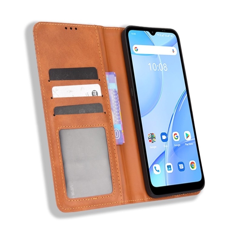 Funda para Umidigi Power 5S con Hebilla Magnética de Cuero Textura Retro (Marrón)