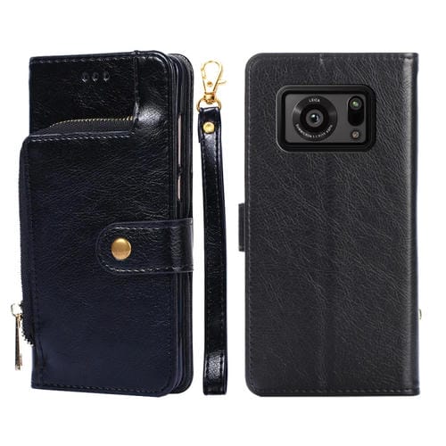 Caja de Teléfono de Cuero Sharp Aquos R6 con Cremallera (Negro)
