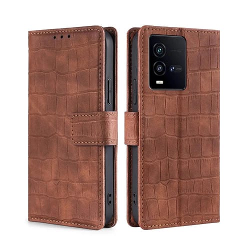 Para Vivo Iqoo 10 Skin Feel Cocodrilo Cierre Magnético Funda de Cuero para Teléfono (Marrón)