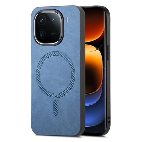 Para Vivo Iqoo 12 5G Retro Magsafe Funda Magnética para Teléfono con Contraportada de Pu (Azul)