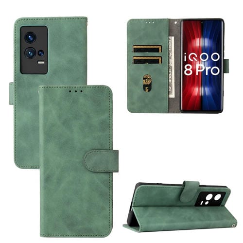 Para Vivo Iqoo 8 Pro Color Sólido Siente la Piel de la Piel Magnética Horizontal Flip Pu Funda de Cuero con Soporte y Ranuras para Tarjetas y Billetera (Verde)