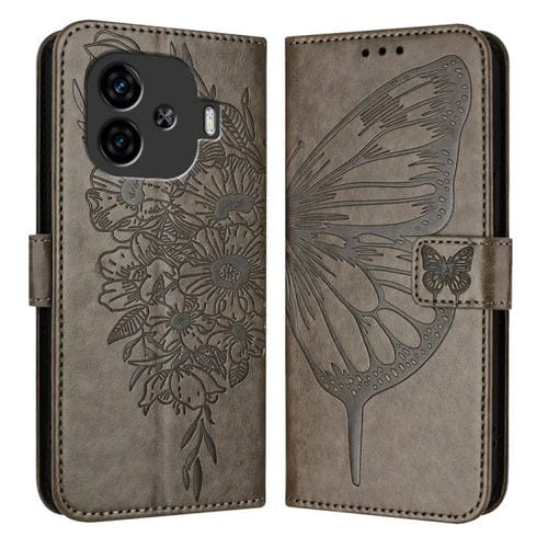 Para Vivo Iqoo Z9 / Iqoo Z9 Turbo 5G Funda para Teléfono de Cuero con Mariposa En Relieve (Gris)