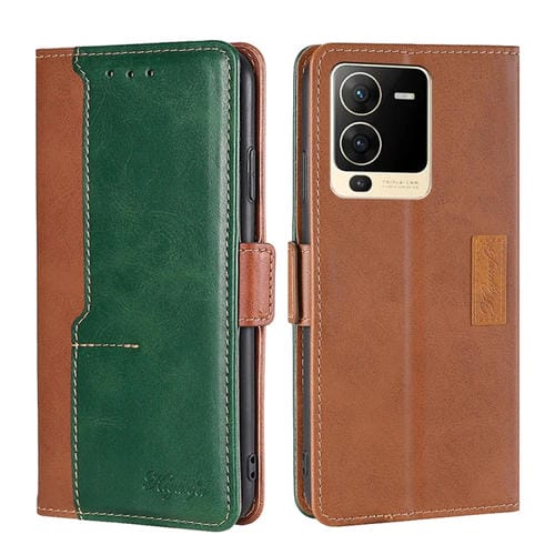 Para Vivo S15 5G Contrast Color Side Hebilla de Cuero Case (Marrón Claro + Verde)