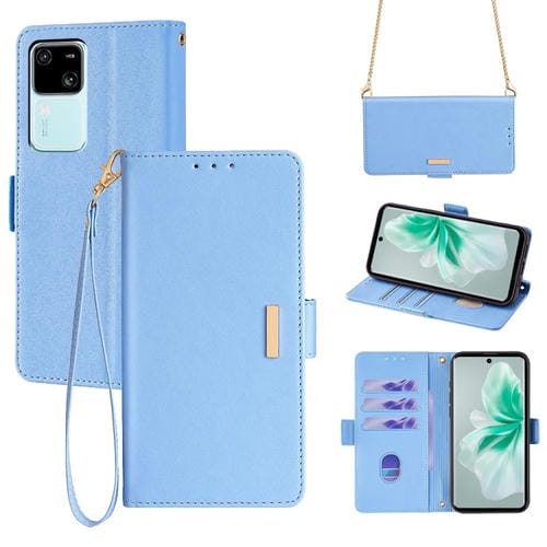 Para Vivo S18 5G / S18 Pro 5G Funda para Teléfono de Cuero con Cadena Cruzada (Azul)