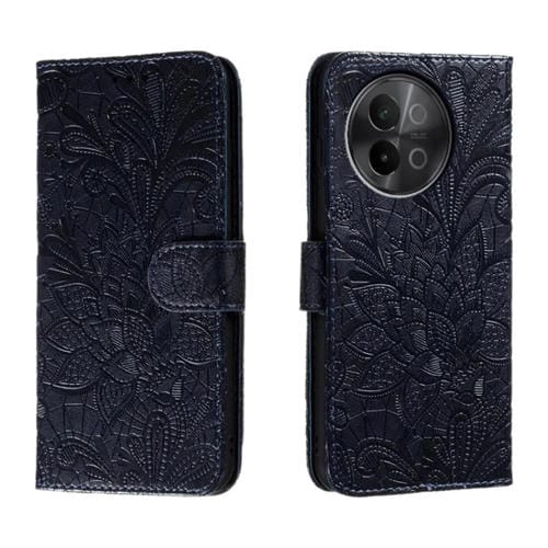 Para Vivo S18E Funda para Teléfono de Cuero con Tapa y Estampado de Flores de Encaje (Azul Oscuro)