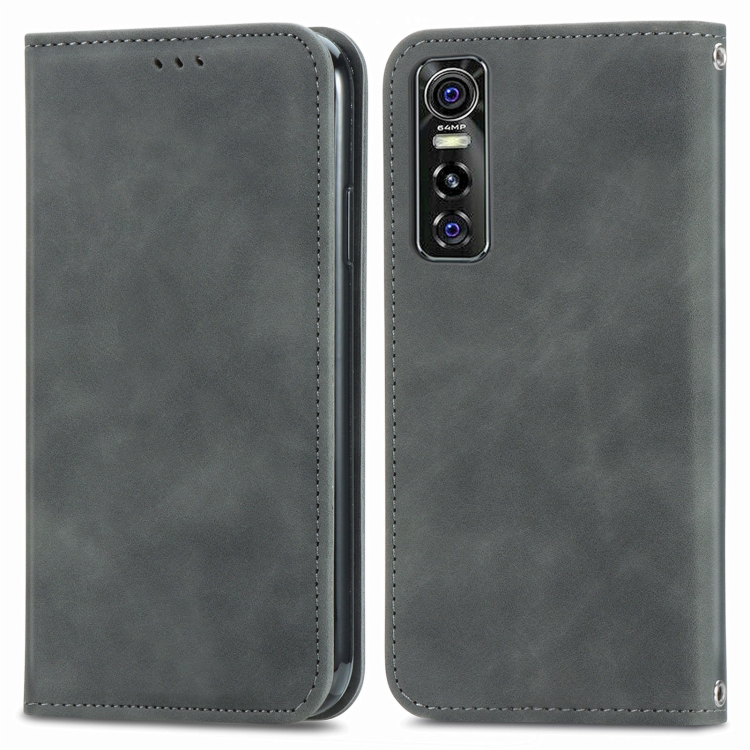 Para Vivo S7 E Retro Piel Siente Negocio Magnético Horizontal Flip Funda de Cuero con Soporte y Ranuras para Tarjetas y Marco de Fotografía (Gris)