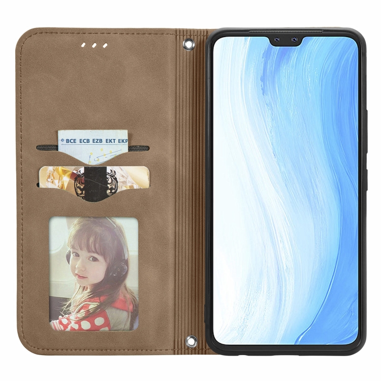 Para Vivo S7 Retro Piel Siente Negocio Magnético Horizontal Flip Funda con Soporte y Tragamonedas de Tarjetas y Marco de Fotografía (BRWon)