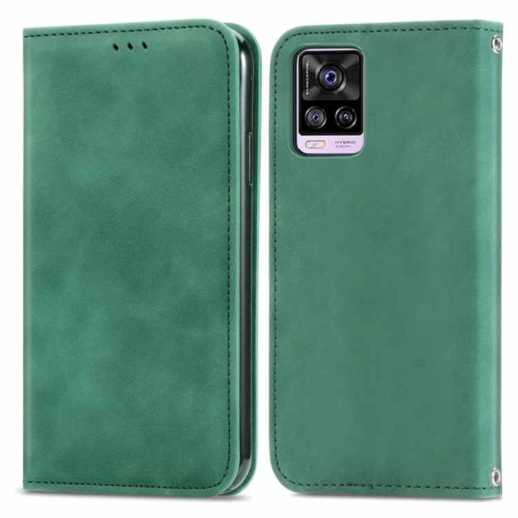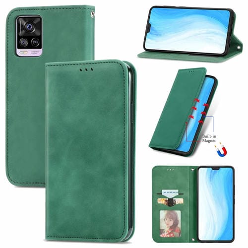 Para Vivo S7 Retro Piel Siente Negocio Magnético Horizontal Flip Funda de Cuero con Soporte y Ranuras para Tarjetas y Marco de Fotos (Verde)