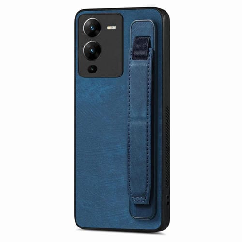 Para Vivo V25 Pro Retro Muñequera Funda Trasera de Cuero para Teléfono (Azul)