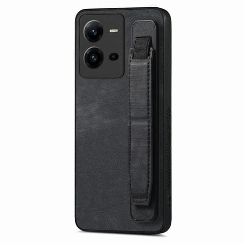 Para Vivo V25 Retro Muñequera Funda Trasera de Cuero para Teléfono (Negro)