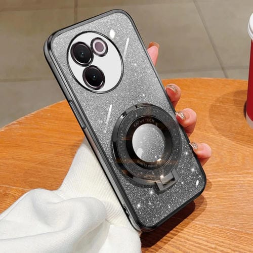 Para Vivo V30E Estuche para Teléfono de TPU con Soporte Redondo y Brillo Degradado Plateado (Negro)