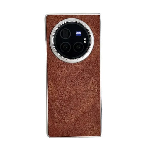Para Vivo X Fold3 Skin Feel Textura de Cuero Pintura Nacarada Funda para Teléfono a Prueba de Golpes (Marrón)