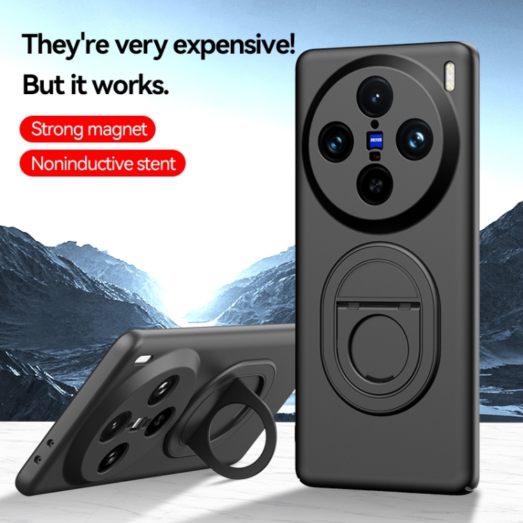 Para Vivo X100 Ultra Magsafe Soporte Plegable Oculto Cobertura Total Funda para Teléfono a Prueba de Golpes (Negro)