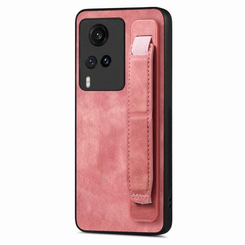 Para Vivo X60 Retro Muñequera Funda Trasera de Cuero para Teléfono (Rosa)