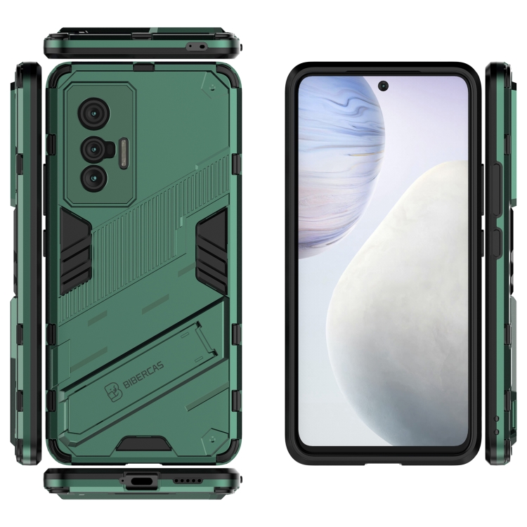Para Vivo X70 Punk Armor 2 En 1 PC + Funda a Prueba de Golpes TPU con Titular Invisible (Verde)
