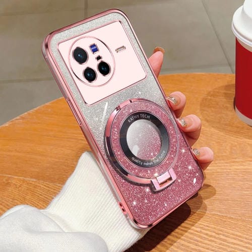 Para Vivo X80 Funda para Teléfono de TPU con Soporte Redondo y Brillo Degradado Plateado (Rosa)
