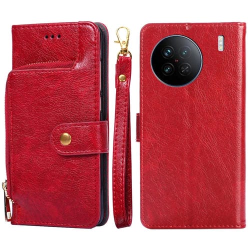 Para Vivo X90 Funda de Cuero con Cremallera para Teléfono (Rojo)