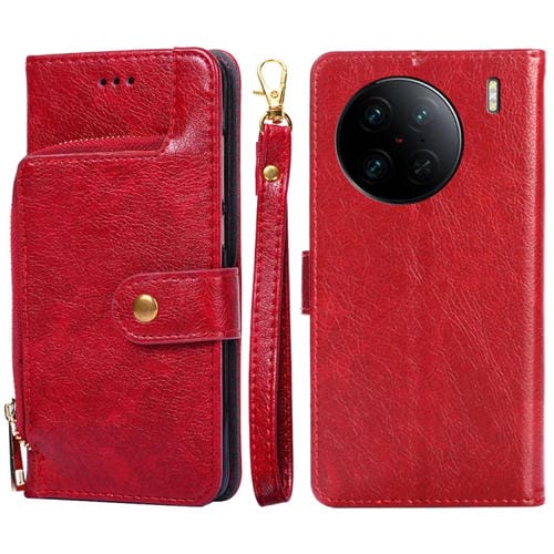 Para Vivo X90 Pro + Funda de Cuero con Cremallera para Teléfono (Rojo)