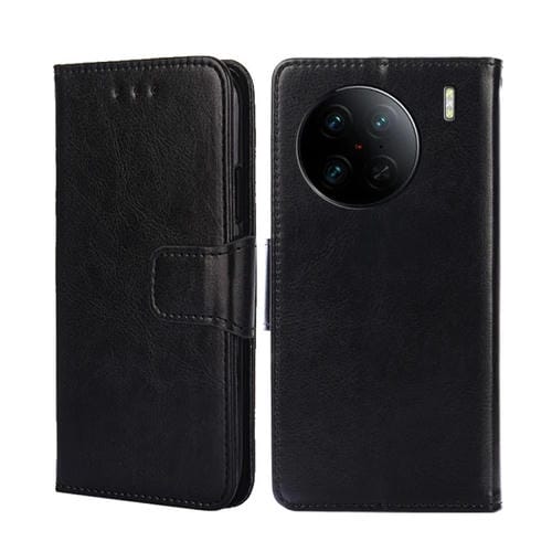 Para Vivo X90 Pro + Funda de Cuero con Textura de Cristal para Teléfono (Negro)
