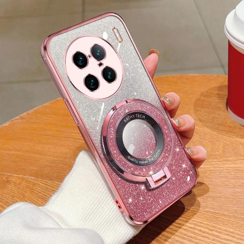 Para Vivo X90 Pro + Funda para Teléfono de TPU con Soporte Redondo y Brillo Degradado Plateado (Rosa)