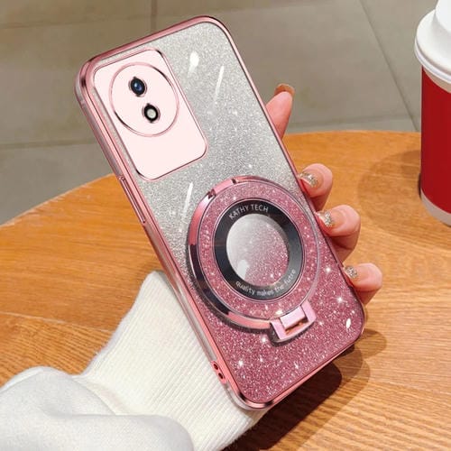 Para Vivo Y02 / Y11 2023 Estuche para Teléfono de TPU con Soporte Redondo y Brillo Degradado Plateado (Rosa)