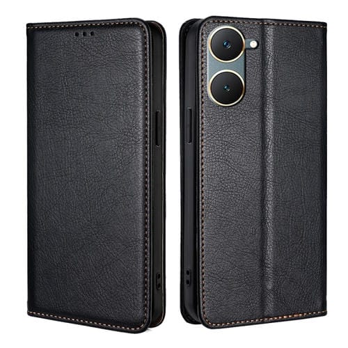 Para Vivo Y03 4G Estuche para Teléfono de Cuero Magnético de Color Sólido con Aceite Brillante (Negro)