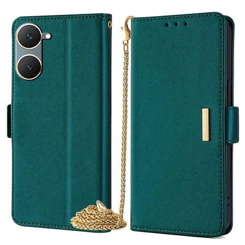 Para Vivo Y03 4G Funda de Cuero para Teléfono con Cadena Cruzada (Verde)