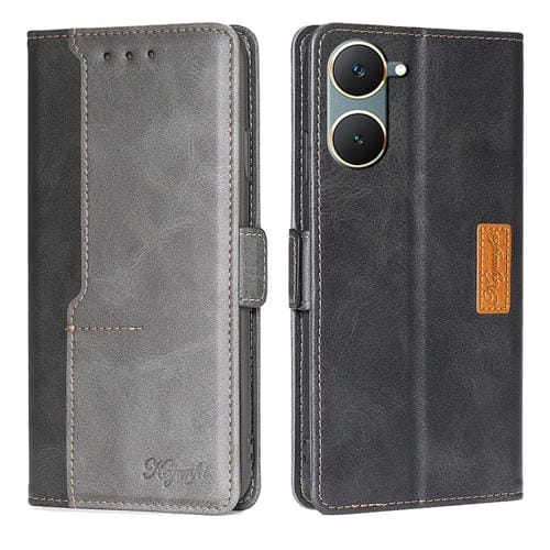 Para Vivo Y03 4G Funda para Teléfono de Cuero con Hebilla Lateral de Color En Contraste (Negro + Gris)