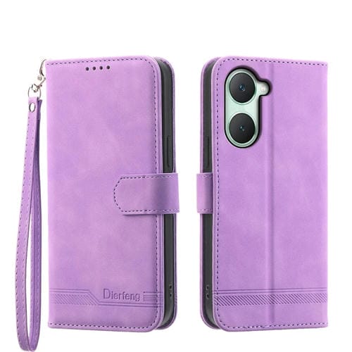 Para Vivo Y03 Dierfeng Dream Line TPU + Funda de Cuero para Teléfono Pu (Púrpura)