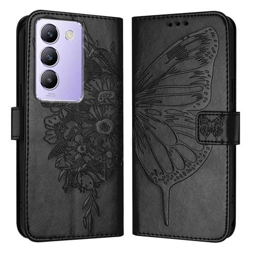Para Vivo Y100 5G Idn / Y200E 5G Funda para Teléfono de Cuero con Mariposa En Relieve Global (Negro)
