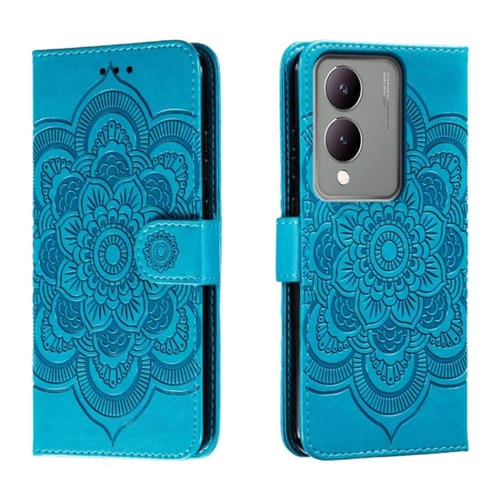 Para Vivo Y17S Sun Mandala Funda de Cuero para Teléfono con Patrón En Relieve (Azul)