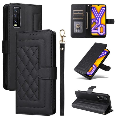 Para Vivo Y20 / Y20I Funda para Teléfono con Tapa de Cuero Diamond Lattice (Negro)