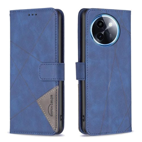 Para Vivo Y200I 5G / Y38 5G Funda para Teléfono de Cuero con Textura de Rombo con Hebilla Magnética (Azul)
