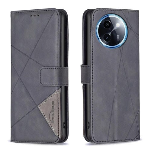 Para Vivo Y200I 5G / Y38 5G Funda para Teléfono de Cuero con Textura de Rombo y Hebilla Magnética (Negro)