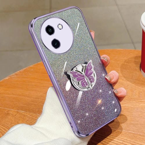 Para Vivo Y200I / T3X 5G Estuche para Teléfono de TPU con Soporte de Mariposa con Brillo Degradado Plateado (Púrpura)