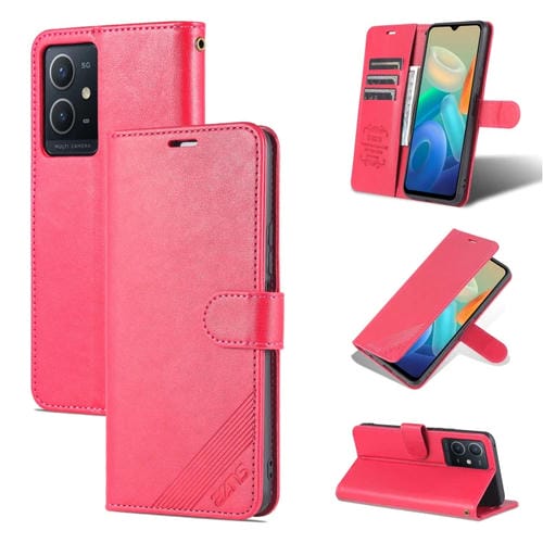 Para Vivo Y33S 5G / Y75 5G Azns Sheepskin Texture Flip Custate Funda Telefónica (Rojo)