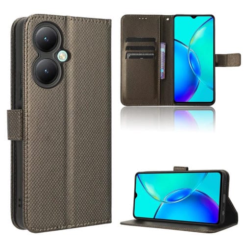 Para Vivo Y35 + Caja de Teléfono de Cuero con Textura de Diamante (Marrón)