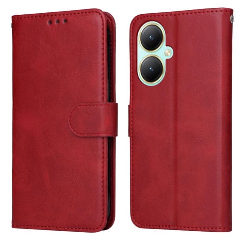 Para Vivo Y35+ Classic Calf Texture Flip Funda de Cuero para Teléfono (Rojo)