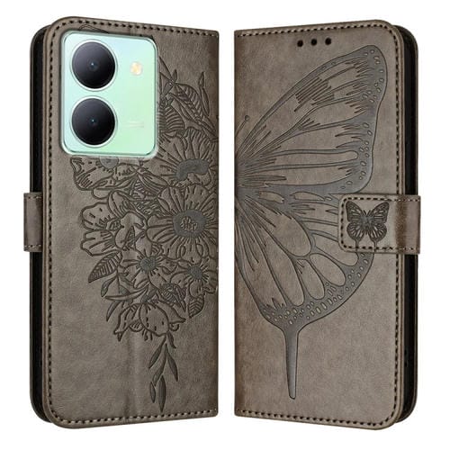Para Vivo Y36 4G / Y36 5G Global / Y36 4G India Funda para Teléfono de Cuero con Mariposa En Relieve (Gris)