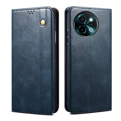 Para Vivo Y38 5G Global Oil Wax Crazy Horse Texture Funda de Cuero para Teléfono (Azul)
