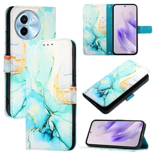 Para Vivo Y38 5G Pt003 Funda para Teléfono de Cuero con Tapa con Patrón de Mármol (Verde)