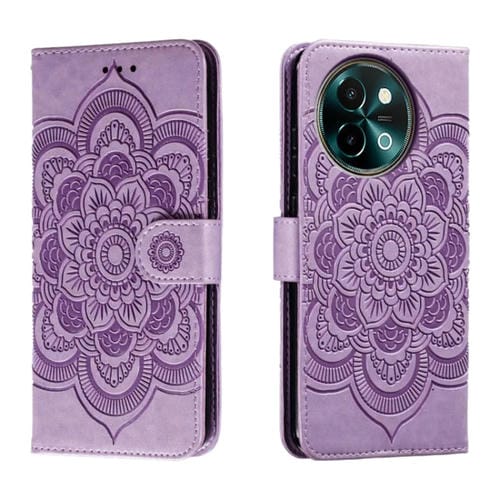 Para Vivo Y38 Sun Mandala Funda de Cuero para Teléfono con Patrón En Relieve (Púrpura)