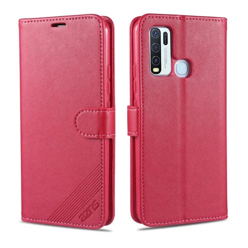 Para Vivo Y50 Azns Funda de Cuero con Tapa Horizontal con Textura de Piel de Oveja con Soporte, Ranuras para Tarjetas y Billetera (Rojo)