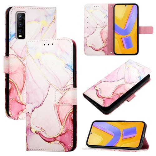 Para Vivo Y70S Pt003 Funda para Teléfono de Cuero con Tapa con Patrón de Mármol (Oro Rosa)