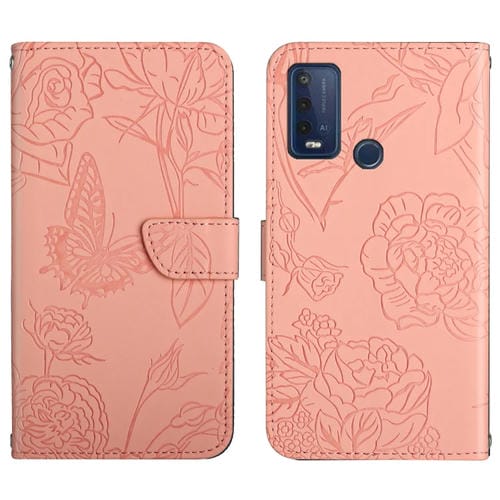 Funda de Cuero En Relieve para Wiko Power U30 Siente la Piel de la Mariposa (Rosa)