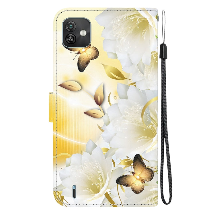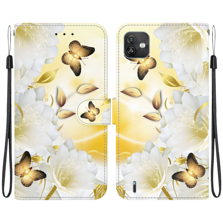 Estuche de Cuero para Wiko Y82 con Dibujo Coloreado y Textura de Cristal (Epiphyllum Mariposa Dorada)
